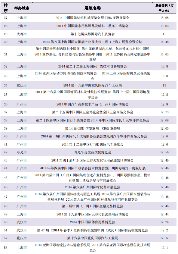 附件二:2014 年中国展览项目按面积排序 TOP100 项目列表