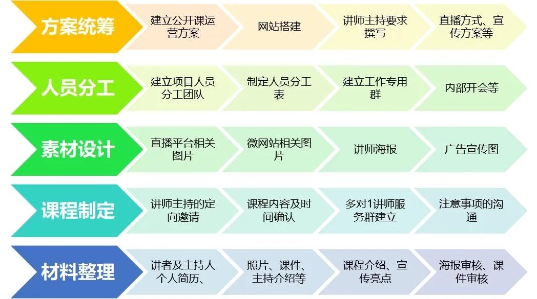 我们从观众、产品、推广及人员管理方面下手,重新梳理了我们的工作流程,做出来一套直播完整方案。下面两张图是我们的标准操作流程SOP。