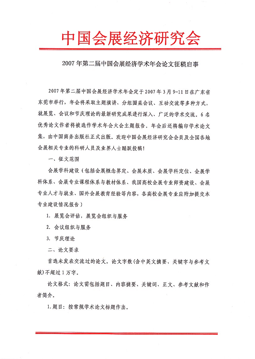2007年第二届中国会展经济学术年会论文征集稿启事
