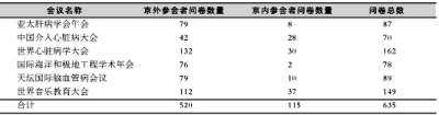 上述会议召开期间,笔者组织人员在会议现场对参会者进行了随机抽样问卷调查,共发放问卷635份,剔除115份北京市参会者所做问卷,有效问卷520份,各个会议的问卷发放情况如表2所示。